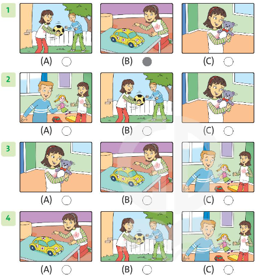 (Nghe các từ trong bài. Nhìn vào các bức tranh. Tô tròn ô chứa đáp án đúng.)