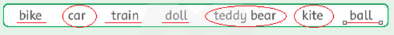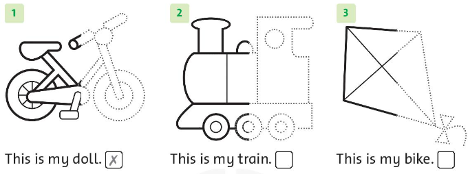 (Khoanh tròn món đồ chơi bạn có. Gạch chân món đồ chơi yêu thích của bạn.)