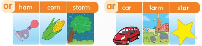 3. Read the chant again. Say the words with ar and or. Write.