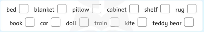 (Khoanh tròn những thứ có trong phòng ngủ của bạn. Viết vào ô trống xem có bao nhiêu món đồ.)