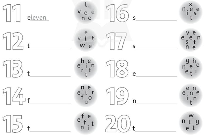 (Nhìn vào các số và các chữ cái. Viết các từ.)