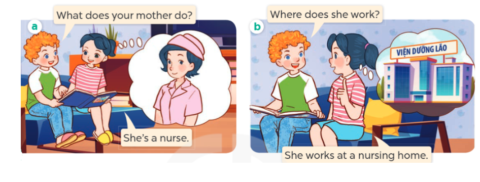 1. A: What does your mother do? (Mẹ bạn làm nghề gì?)