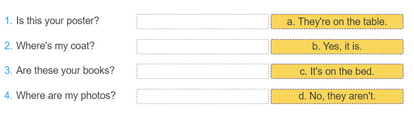 4. Những tấm ảnh của tôi ở đâu? – Chúng ở trên bàn.