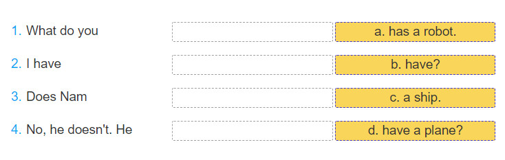 2. Anh ấy có 1 con robot. Bạn có con robot không?