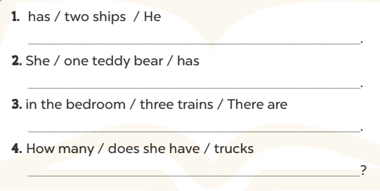 3. There are three trains in the bedroom. (Có 3 chiếc tàu hỏa trong phòng ngủ.)