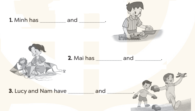 1. Minh has one train and two ships. (Nam có một chiếc tàu hỏa và 2 chiếc tàu thủy.)