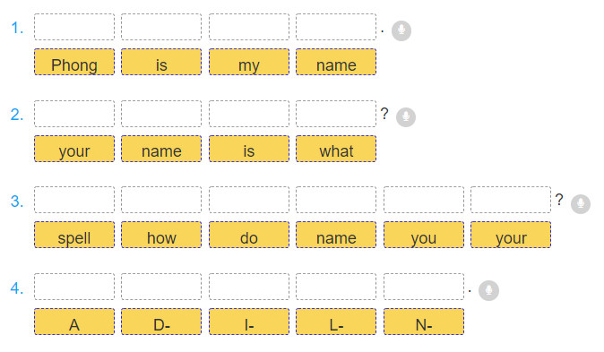 Phong: (4) _____ . How do you (5) _____ your name?