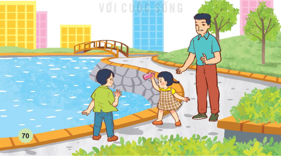 – Tình huống: Mình đi dạo quanh công viên thì thấy 1 em bé định vứt chai nhựa xuống dưới hồ