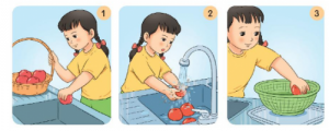 Câu 1: Nhìn tranh kể tên những việc bạn nhỏ đã làm
