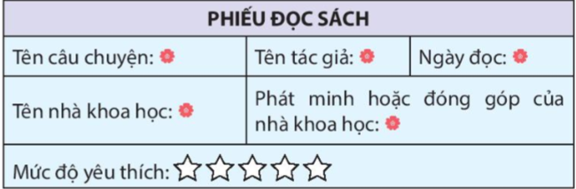 Em dựa vào các thông tin đã tìm hiểu để hoàn thành phiếu đọc sách.