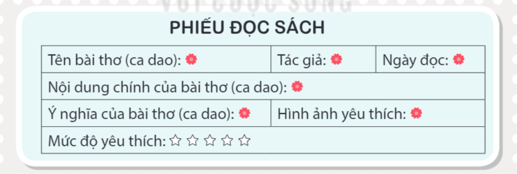 Em hoàn thiện phiếu đọc sách.