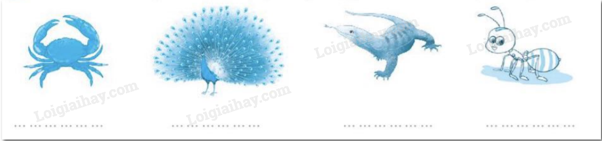 Viết từ có tiếng bắt đầu bằng c hoặc k gọi tên mỗi con vật trong hình.