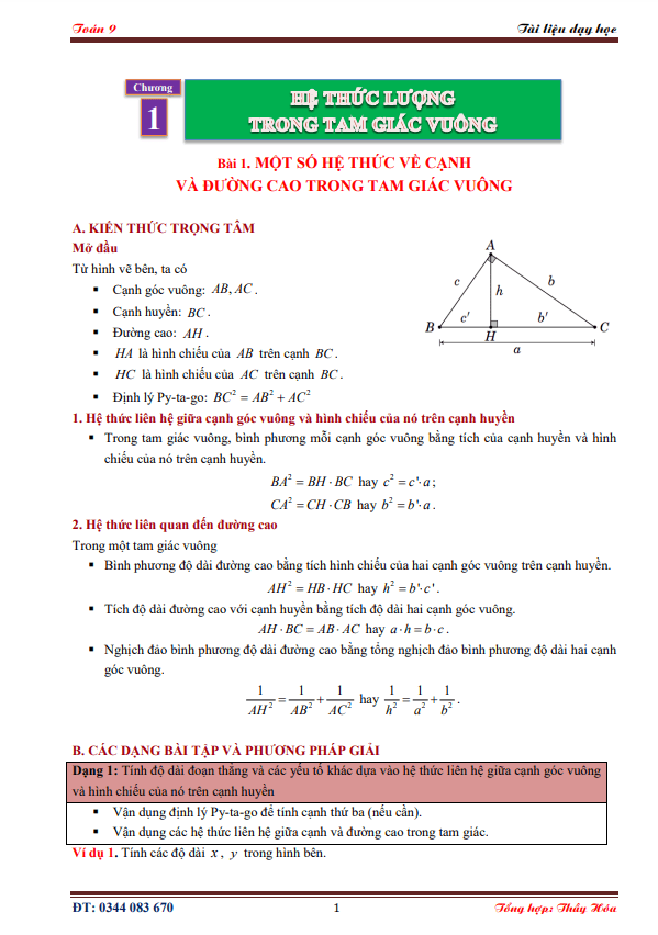Chương 1: Hệ thức lượng trong tam giác vuông