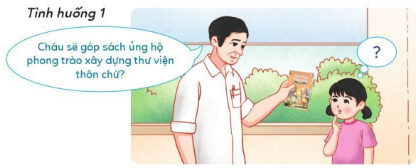 Nếu là bạn nữ trong tình huống trên, em sẽ đồng ý góp sách ủng hộ phong trào xây dựng thư viện của thôn. Vì đấy là hành động thể hiện tình yêu quê hương.