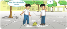 Nếu làm rơi mũ của bạn vào vũng nước, em sẽ nhặt mũ lên, xin lỗi bạn chân thành và làm sạch mũ trước khi trả lại cho bạn. (Mình xin lỗi bạn nhé! Để mình mang mũ về làm sạch rồi mình trả lại cho bạn nhé!).